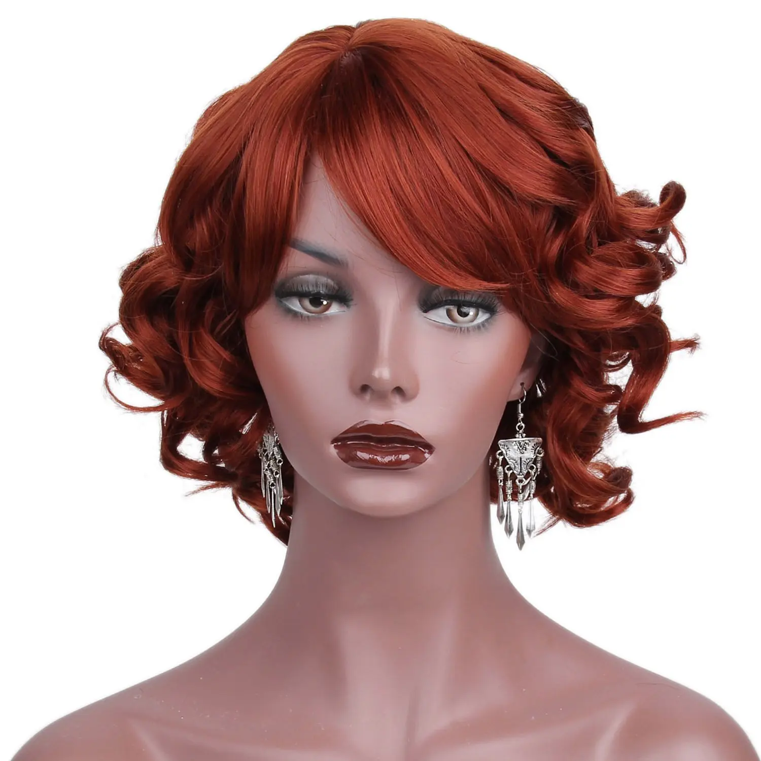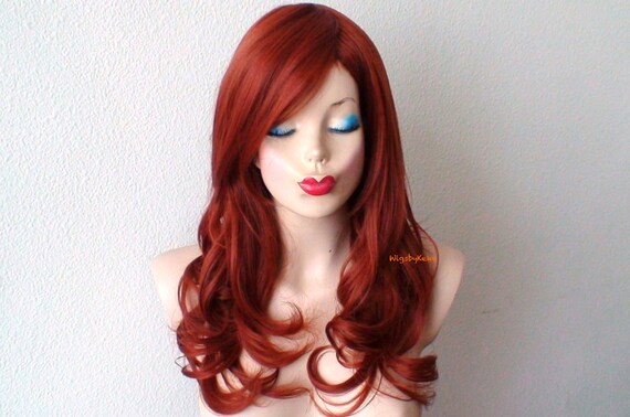 Copper Red Wig Medium Length Wavy Hairstyle Side Bangs Wig Durable Heat Friendly Synthetic Wig For Everyday Wear Or Cosplay