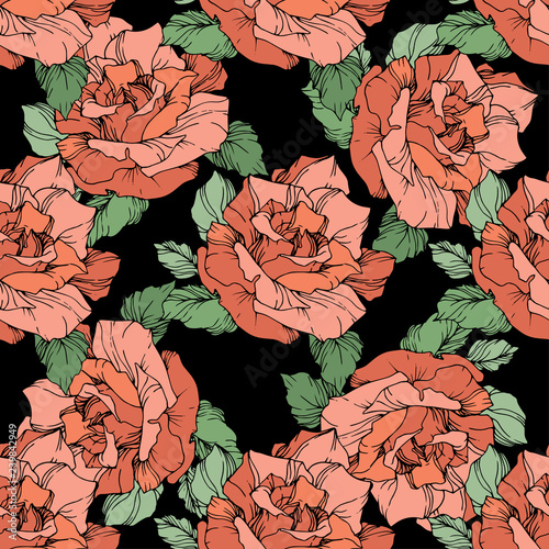 Vector Pink And Red Rose Floral Botanical Flower Engraved Ink