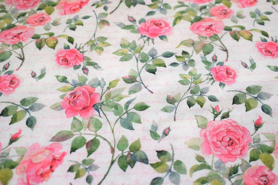 Rose Fabric Pink Rose Pattern Quilting Fabric Cream Fabric Cotton Fabric Garden Fabric Red Rose Pattern Price By The Half Metre
