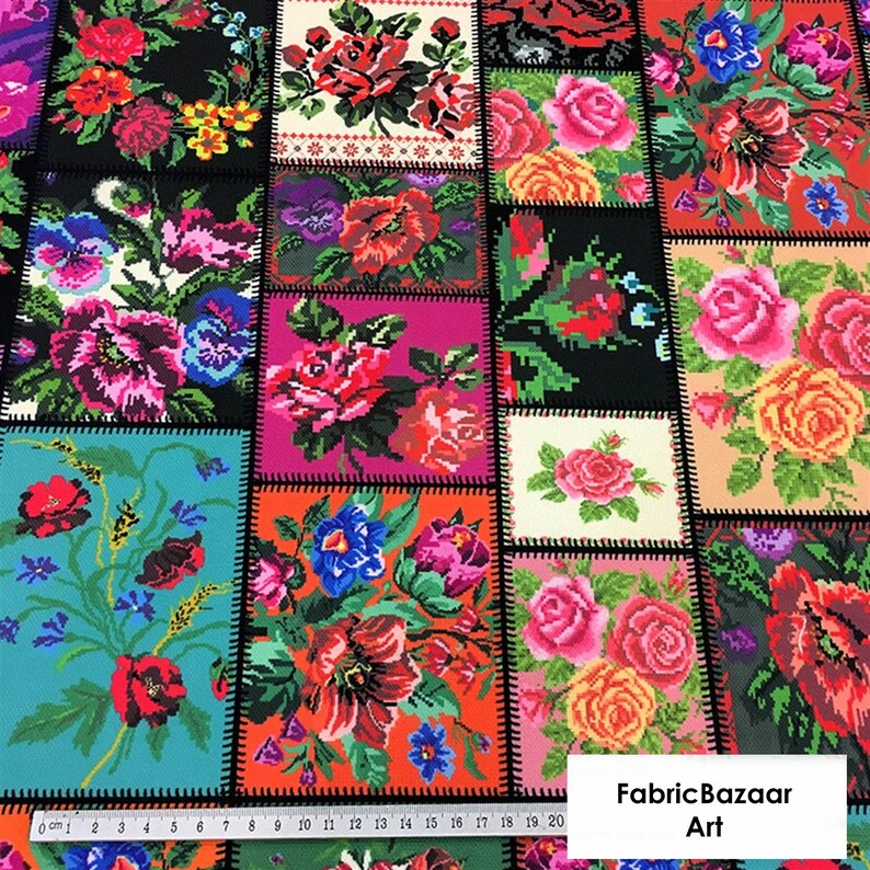 Cross Stitch Pattern Fabric Patchwork Print Fabric Crossstitch Design Colorful Fabric Pink Rose Fabric Yellow Rose Fabric Red Rose Fabric