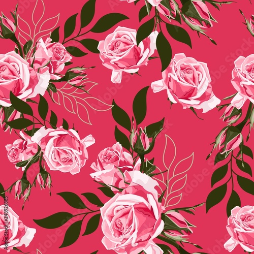 Red Hybrid Rose Floral Botanical Flower Seamless Background Pattern Fabric Wallpaper Print Texture
