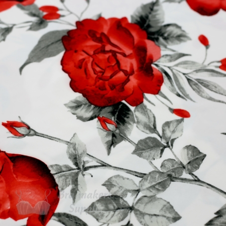 Red Roses Cotton Lycra Jersey Knit Fabric
