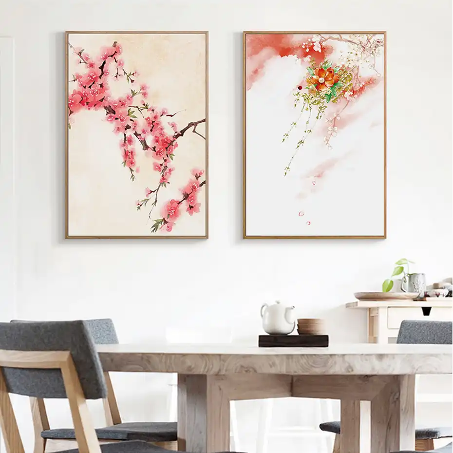 Canvas Wall Art Decor Cherry Blossom Painting Feng Shui Painting