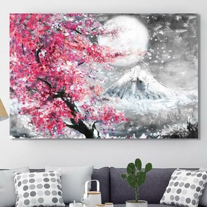 Pink Oil Painting Japan Mount Fuji Cherry Blossom Canvas Wall Art