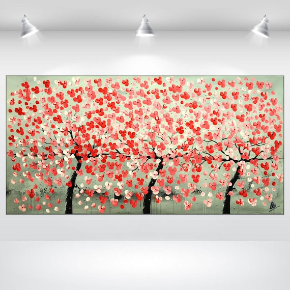 Acrylic Painting Red Cherry Blossoms Canvas Wall Art Etsy