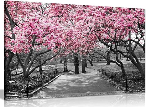 Pink White Cherry Blossom Trees Scenic Canvas Wall Art Large