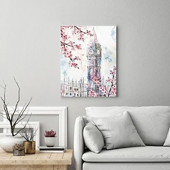 New View Cherry Blossom London I Big Ben Canvas Wall Art