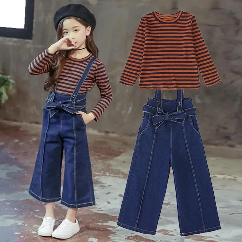 2019 Spring Kids Fashion Girls Clothing Sets 2 Pcs Striped T Shirts
