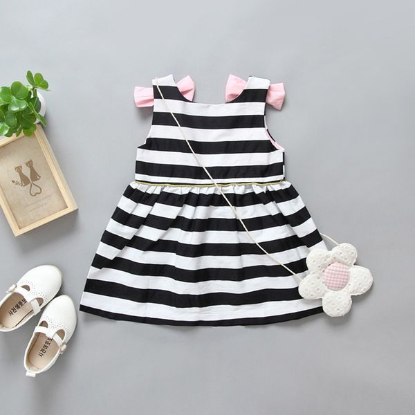 2020 Summer White And Black Stripe Kids Girl Dress 2017 Baby Girl