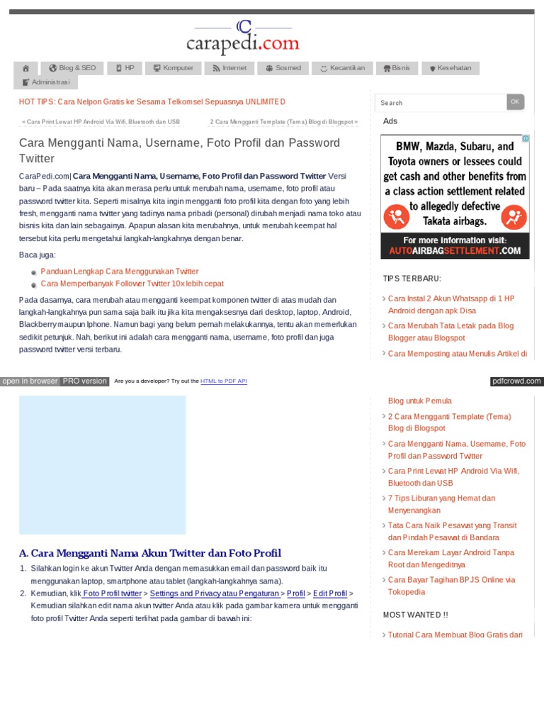 Cara Mengganti Username Twitter Lewat Hp Android Dan Pc